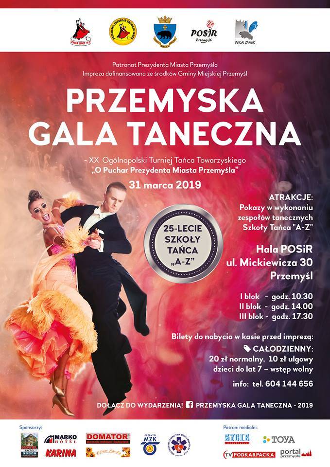 Przemyska Fundacja Rozwoju Tańca i Szkoła Tańca „A-Z” wraz z Przemyskim Ośrodkiem Sportu i Rekreacji i Przemyskim Centrum Kultury "ZAMEK", serdecznie zapraszają do Przemyśla na PRZEMYSKĄ GALĘ TANECZNĄ - XX Ogólnopolski Turniej Tańca Towarzyskiego " O Puchar Prezydenta Miasta Przemyśla".