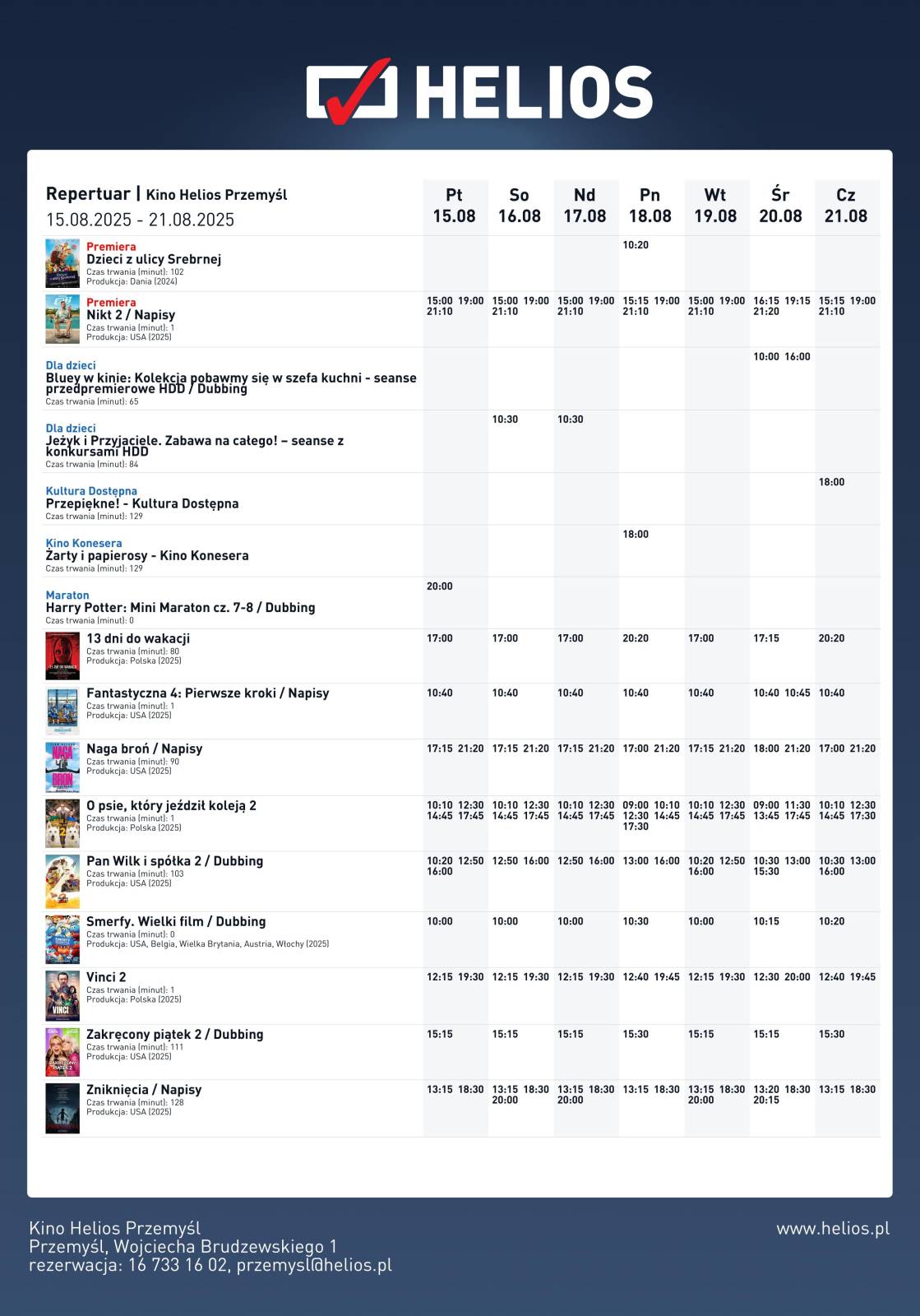 Repertuar Kina Helios Przemyśl 15-21.08.2025