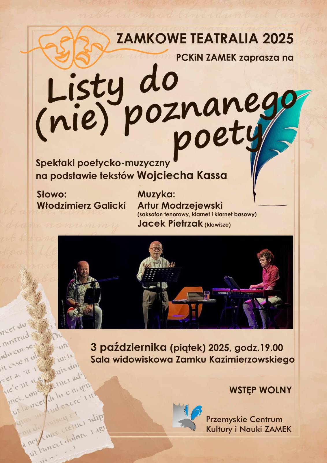 z cyklu ZAMKOWE TEATRALIA „Listy do (nie)poznanego poety” spektakl poetycko-muzyczny