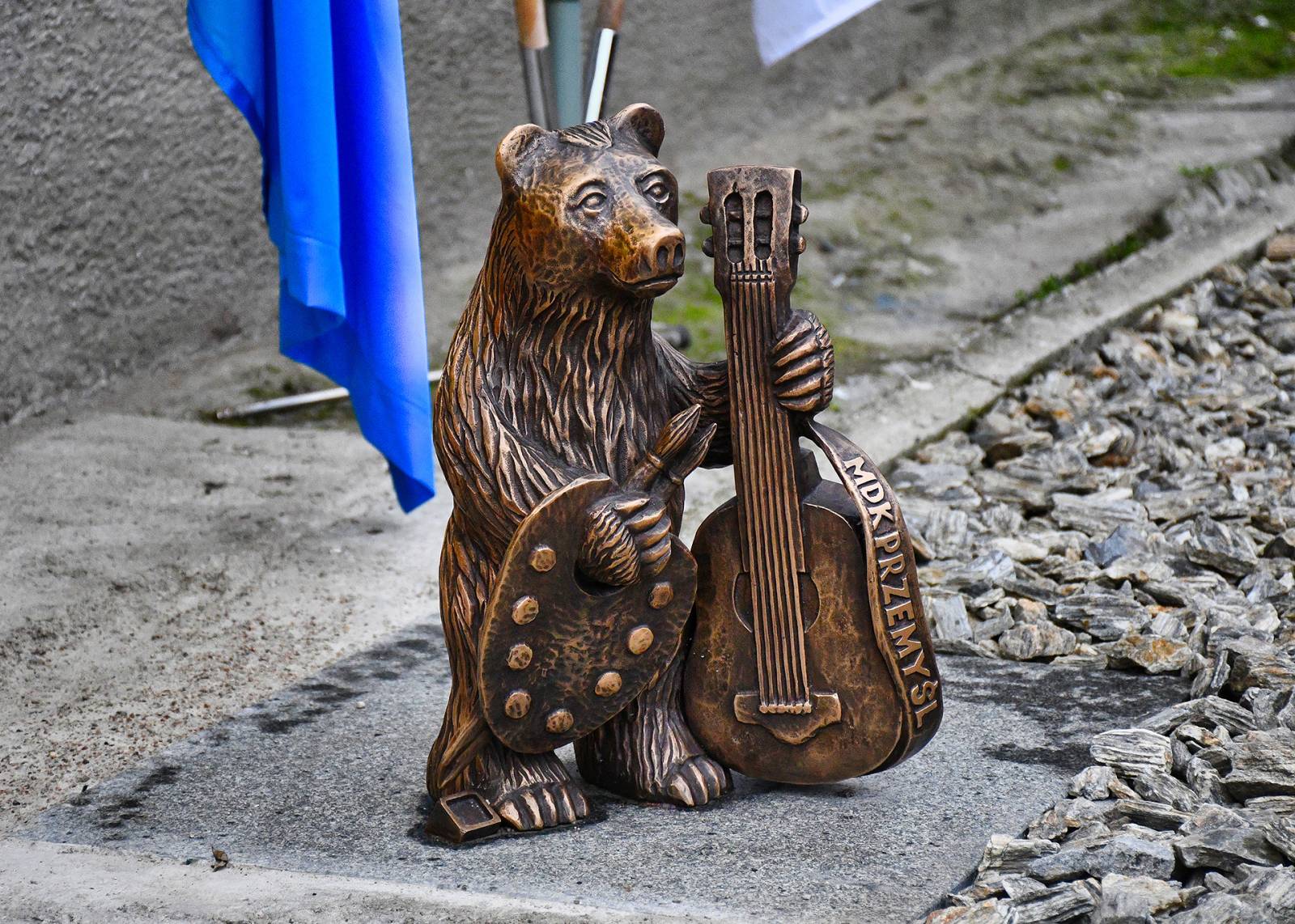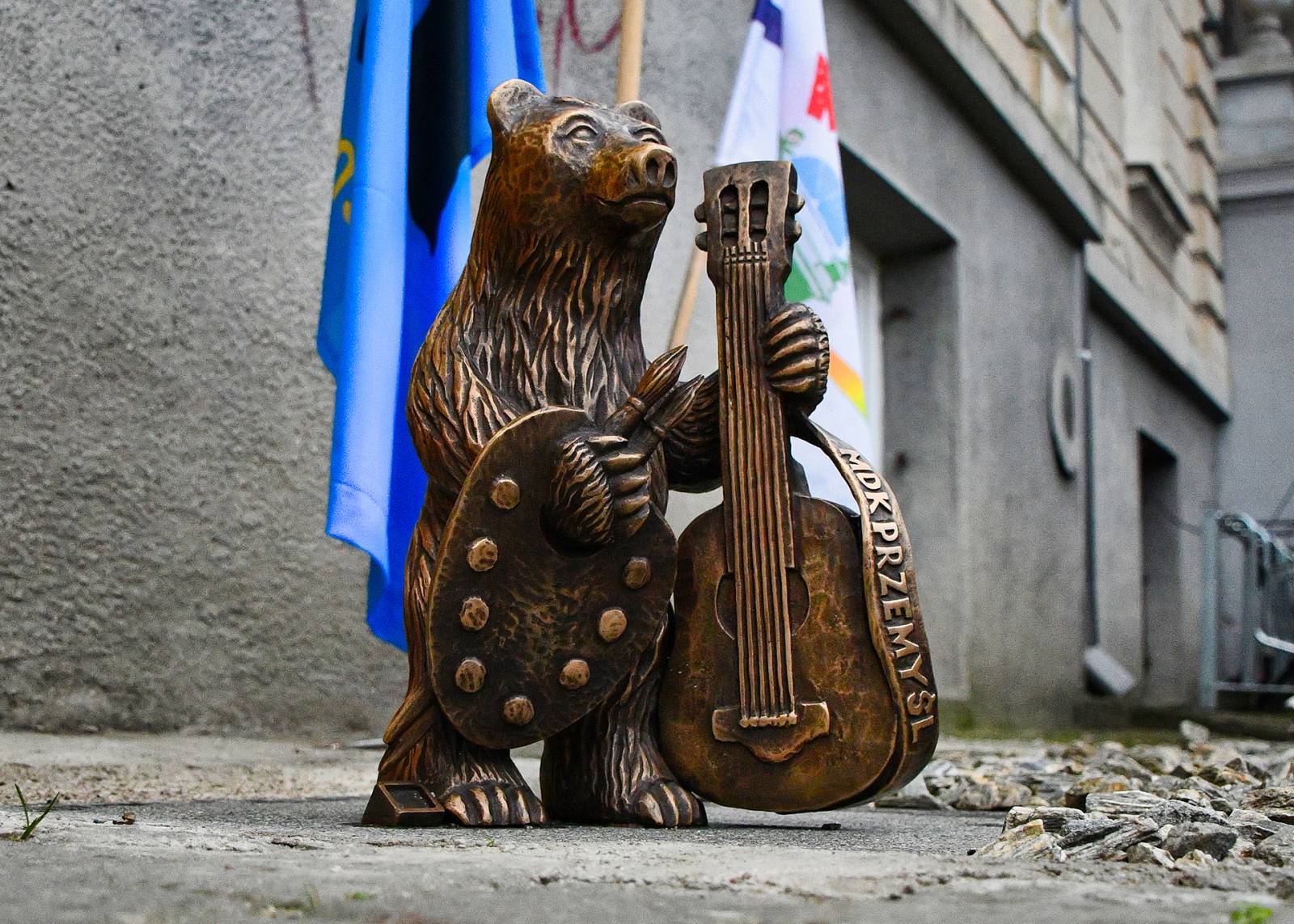 Ten słodziak z gitarą i paletą malarską w łapkach dumnie pozdrawia przechodniów przy siedzibie Młodzieżowego Domu Kultury w Przemyślu, przy ulicy Świętego Józefa.