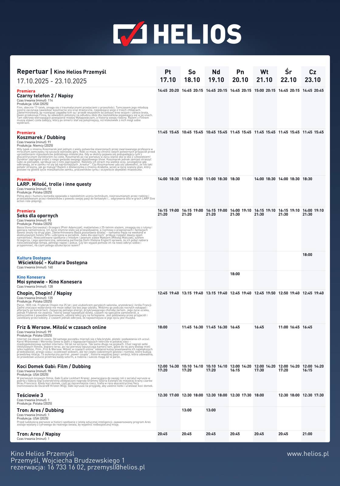 Repertuar Kina Helios 17.10.2025 - 23.10.2025