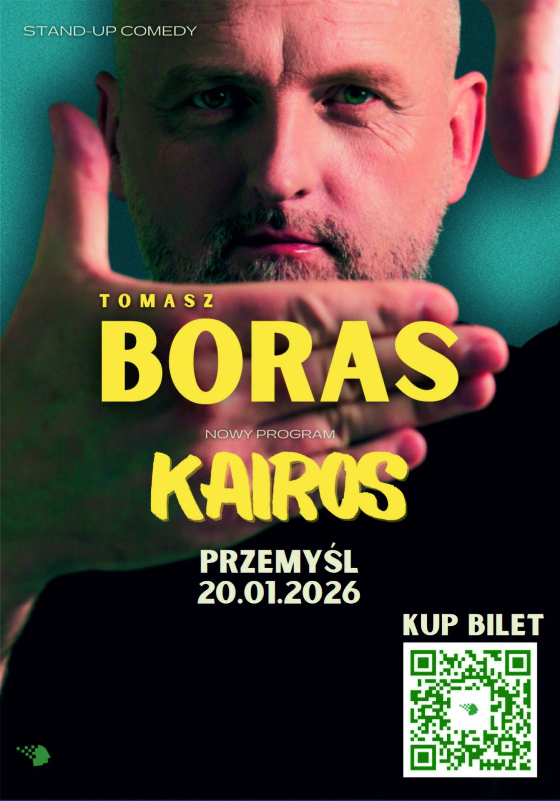 Tomasz Boras wraca z nowym programem "Kairos" - opowieścią o momentach, nie tylko tych przełomowych ale też. To podróż przez codzienność, przegapione okazje, spóźnione przemyślenia i niespodziewane wglądy - podane w formie krótkich, celnych żartów, z których Boras znany jest najlepiej. Twórca, którego żarty wybrzmiały między innymi w Comedy Central, Polsacie i TVN oraz przede wszystkim przed licznym audytorium w świecie rzeczywistym. Boras z pozornie błahych spraw potrafi często w jednym zdaniu wycisnąć śmiech, refleksję, raz odrobinę, raz ocean absurdu.