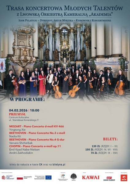4 lutego br. Centrum Kulturalne w Przemyślu zaprasza na koncert, który odbędzie się w ramach TRASY KONCERTOWEJ MŁODYCH TALENTÓW z LWOWSKĄ ORKIESTRĄ KAMERALNĄ „AKADEMIA”.