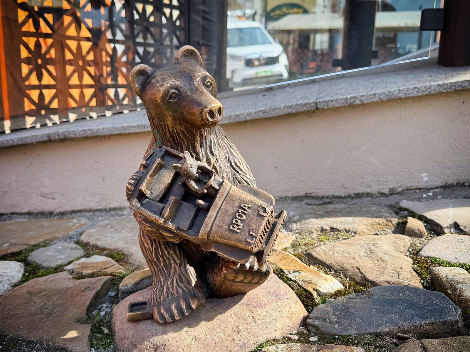 Na przemyskim Rynku, tuż przy awaryjnym wyjściu z trasy podziemnej, stoi niezwykły miś. W łapkach trzyma wojskowego Jeepa, jakby właśnie wrócił z małej, miejskiej misji.