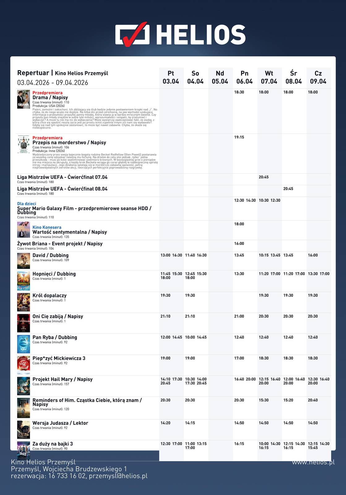 Repertuar Kina Helios Przemyśl 03.04.2026 - 09.04.2026