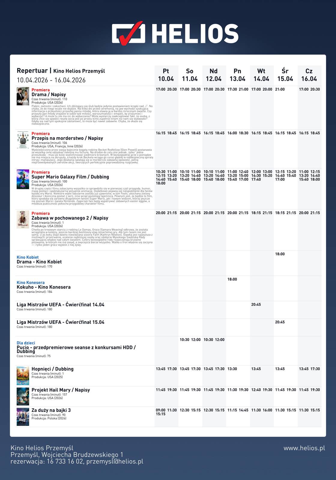 Repertuar Kina Helios 10.04.2026 - 16.04.2026